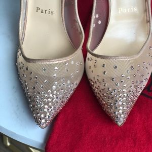 Comes with dust bag-no box! They're like new. All signs of wear pictured- some missing crystal shows in the picture but it’s not noticeable. Have been worn 2 times. Brand: Christian Louboutin Made: Italy leather Size: 38 Euro These shoes Retail for $1445 +tax. The PERFECT engagement or wedding πŸŽ€ Valentino, YSL, Dior, Fendi, Manolo, JimmyChoo, Chanel, Gucci, Dolce, Prada , Saks Fifth Avenue,Christian Louboutin