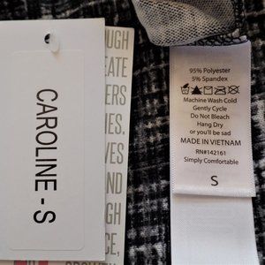 New with tags, small (6-8) size, Caroline cardigan in soft, lightweight, tightly woven sweater knit fabric. Plaid pattern in black, off white, cool grey colors.
