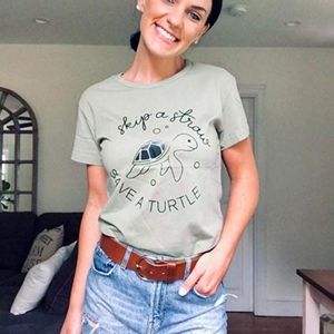 VSCO Girl Skip A Straw Save A Turtle Tee Shirt