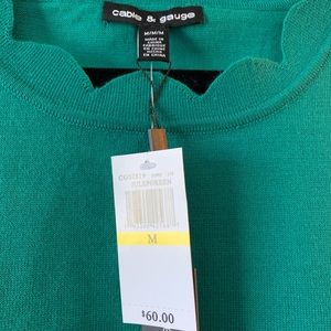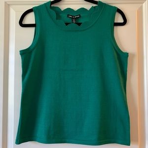 Adorable teal sweater tank featuring a scalloped neck line. A must have for the office wardrobe.