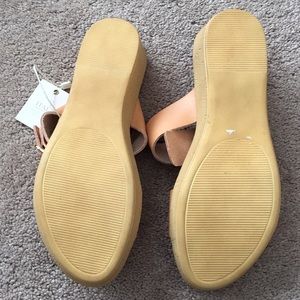 So cute. Leather adjustable straps and upper. Manmade sole (looks like cork). Heel height 2.”