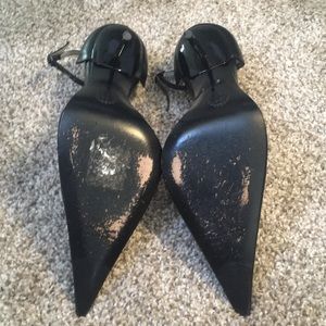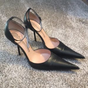 Italian Leather Black Pointy Heels Size 37 6.5M