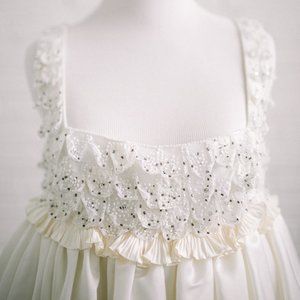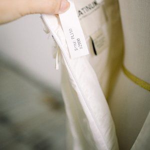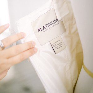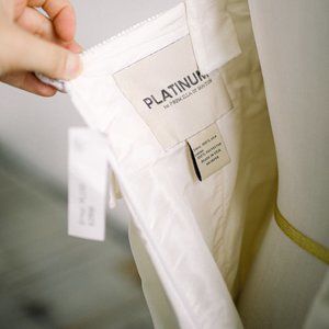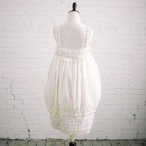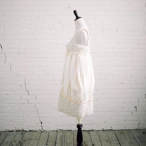 Size 4 Platinum Priscilla of Boston Silk and Beads. Runway dress from the platinum line - 100% silk. This is a very unique dress - it's kind of round and boxy, but could be perfect on a modern bride for a getaway dress, bridal shower, honeymoon, or other fun occasion. Beautiful fabric and beading. I planned on having the bottom removed, but I chose a different 2nd wedding dress.