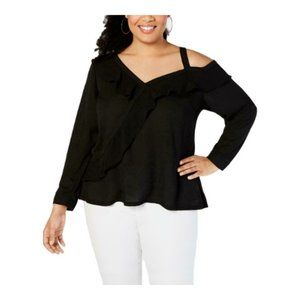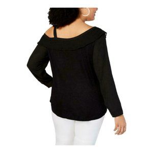 INC Womens Ruffled One Shoulder Solid Blouse Top Pullover Career Plus Size 1X Black