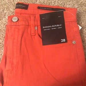 ✨ NWT Beautiful Banana Republic Skinny High Rise Ankle Jeans with raw hem detail in bright tangerine shade. BR’s most popular style of jeans. Ready to ship from smoke free home.