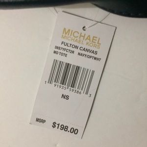MICHAEL KORS MK Fulton Navy Blue White Striped Canvas Tote Bag Nautical NWT $198.