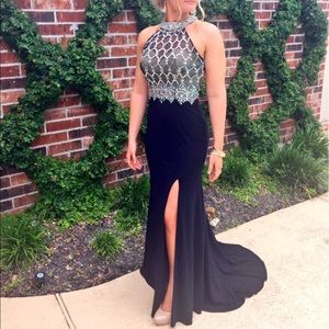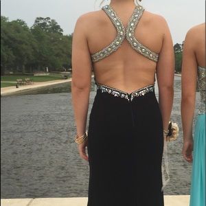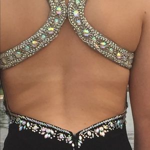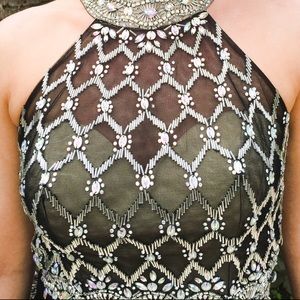 Size 4. Worn once. Hand stitched beading, thick quality material. Dry cleaned. Zips up in back and straps clasp in the back. Gorgeous! Please comment to ask any other questions.