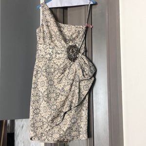 Very elegant pewter, gold, and white print with lead and pewter beading. Excellent condition worn only once.