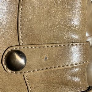 Super cute Xhilaration booties. Very steampunk esc booties. Loved but still in good condition. There’s a small rip in the front of the right shoe (as shown in the picture) and a small scratch on the side of the right shoe(also in picture) but otherwise in great condition:)
