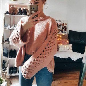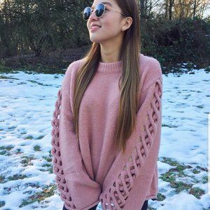 Braided sleeve round neck sweater. Loose fit. Rare found.