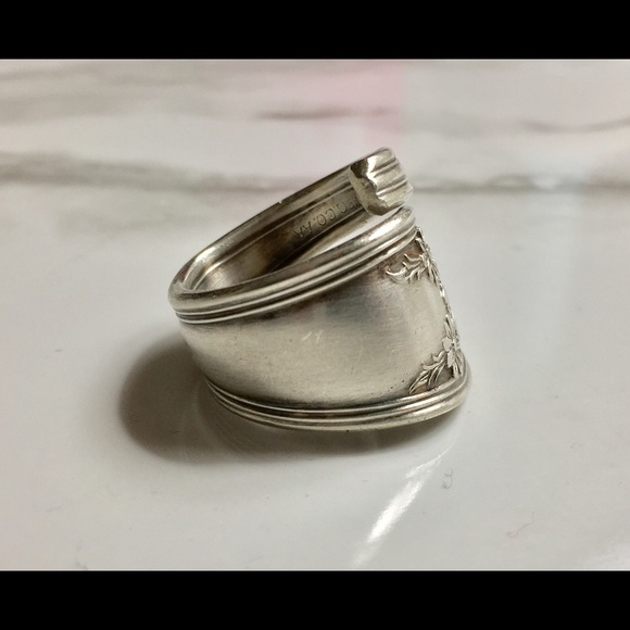 Sterling Silver Plate Spoon Ring Floral Vintage