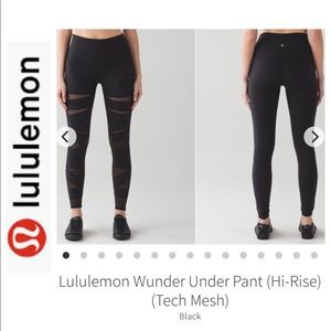 ⭐️Moving Sale⭐️Lululemon Wunder Under Tech Mesh. High Rise 28 inch inseam. Full Length. Please check pictures closely, the cover shot is a similar style but the leggings are a satin like band not mesh. These are in Like New Condition. Size 6