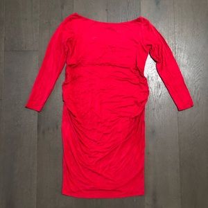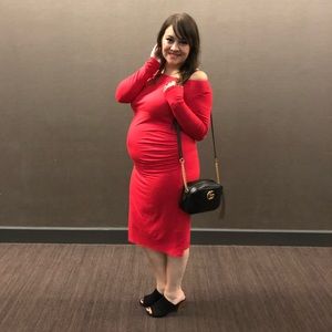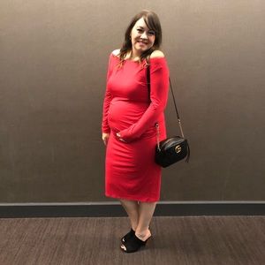 Long sleeve bodycon maternity dress with bardot neckline. Fabric is double layered so it's not too thin. Please carefully review each photo before purchase as they are the best descriptors of the item. My price is firm. No trades. First come, first served. Thank you!