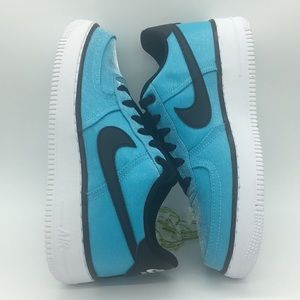 Brand new in a box, no lid, authentic unisex Nike Kid's Air Force 1 LV8 Shift GS Blue Gaze/Platinum Tint/Black AV5154-400