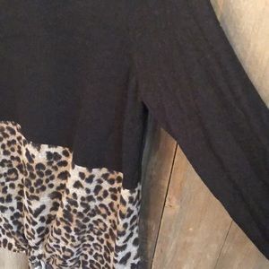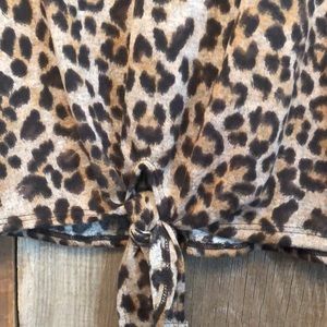 Super soft and cozy colorblock leopard print twist front tunic.