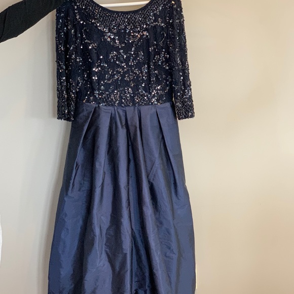 STUNNING gown that my mother wore as a MOB gown, sequin top and taffeta skirt. Worn once. Aidan Mattox brand from BHLDN. Hemmed to fit 5’ 6” wearing 2” heels. This dress is incredible in person, and has been dry cleaned.