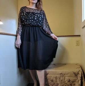 Absolutely beautiful vintage 80's or 90's evening dress. Sheer skirt, top has sewn in tank under a sheer top with delicate patterns that are embroidered with gold. Stunner ✨