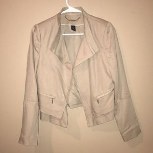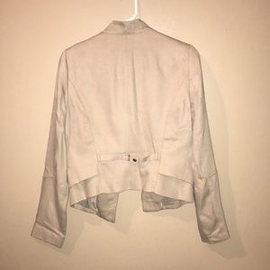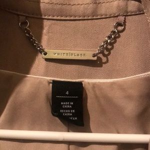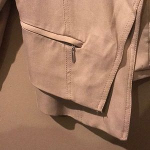 Tan blazer with 2 zip up pockets in the front. An under slip with the same fabric and color at the bottom. Brand new, only worn once! Size 4