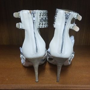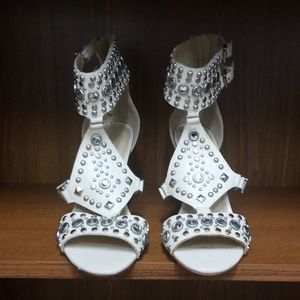 Aldo Cream Studded leather heels with normal wear and tear. The heels are 4 inches high and are in good condition. If you have any questions I will be happy to answer them! The pictures are listed in the description above. Happy poshing!