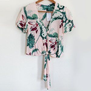 NWT LUSH Blush Palm Short Sleeve Tie Front Shirt
