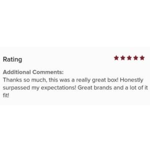 5lbs of clothing of various brands, styles and sizes with the occasional bag or pair of shoes. All item's conditions may vary from very good used condition to excellent used condition or NWT. Review the brands I sell to get an idea of what you might be receiving. Some customizations may be made to your box depending on what I have in stock. Feel free to reach out with any questions. Please review my love notes to ensure that you will love your box.
