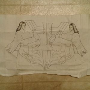Two angels drawing on white cloth. You can lay on your table or hang it on wall. Handmade.