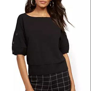 Button-Accent Puff-Sleeve Top - 7th Avenue