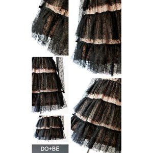 Black Lace Overlay Tiered Ruffle Romantic Dress