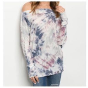Tie dye slouchy off the shoulder dolman top