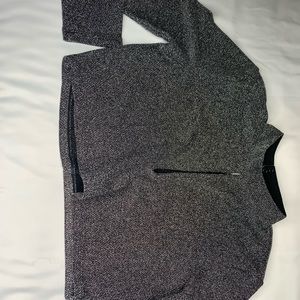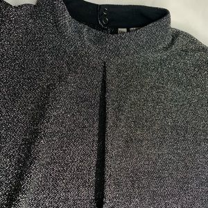 Low-Cut Short Top Black Glittery Long Sleeves.
