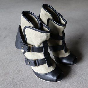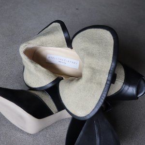 Urban fashion peep toe canvas and vegan leather booties by Stella McCartney. Loved by street style photographers, Stella McCartney's canvas ankle boots are your shortcut to front row fashion status.