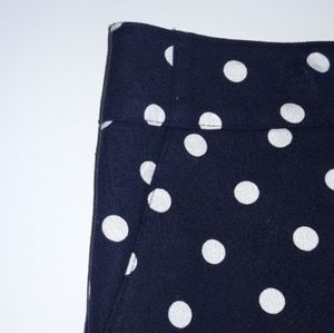 This navy and white polka dot pencil skirt is the perfect staple piece for your closet! Features non-functional pockets, a hidden back zipper with hook/eye closure, and a split in the back.
