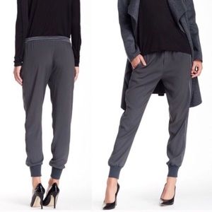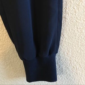Vince Navy Joggers are very versatile while being extremely comfortable with a light and airy feel. You can dress these joggers up or down. Elastic waistband with hook bar closures. Cuffed Ankle and side seamed pockets. In Great Condition!