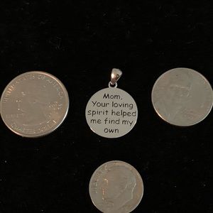 Sterling Silver 925 Pendant. Quote: “MoM” (“Mom Your loving spirit helped me find my own”.) 20” Silver Chain.