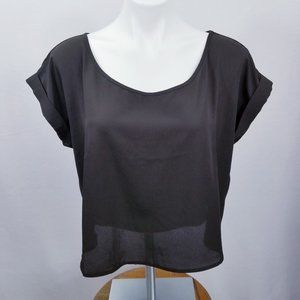 Wet Seal short semi-sheer lightweight top with tulip back and cuffed cap sleeves. Scoop neck. Fabric is 100% polyester. Tag size XL. New with tags.