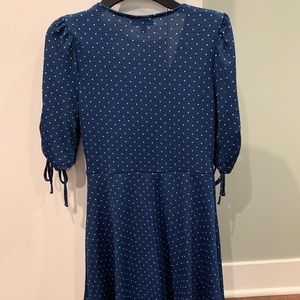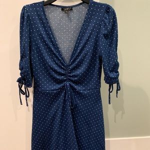 Really cute top shop blue and white polkadot dress. It’s in Perfect shape, fitted with ties. Really comfy!