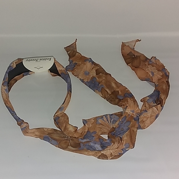 These are a standard plastic horseshoe shaped hair band, covered in fabric - extended for use as a hair tie, or just left hanging - get creative!