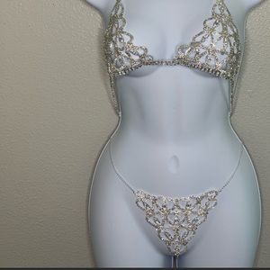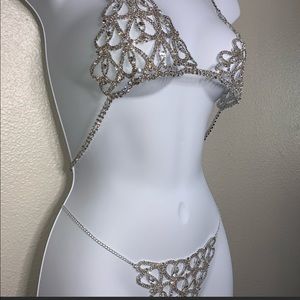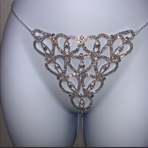 You’ll feel like a real goddess in this ! This is for the rhinestone thong only. Top is sold out and this is my last one! The crystal panties are in a heart design and sparkles too! They’re a thong style with a double chain closure as well. Measures approx 41”. Perfect for festivals like Coachella or a rave. Really sexy. BRAND NEW