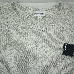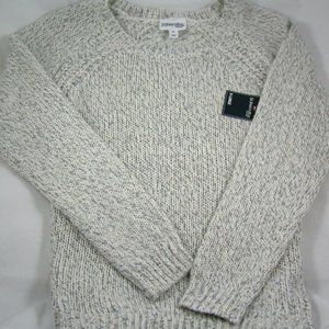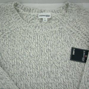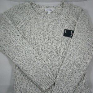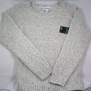 St. John's Bay Ivory with Heather Grey Long Sleeve Sweater. Material is 66% Acrylic, 27% Polyester, 6% Wool, 1% Other Fibers (Metallic).