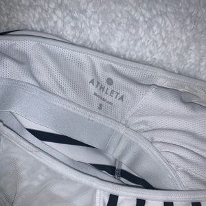 Super cute workout tank with built in bra. Size S. White and blue stripes. Cute mesh accent in the front with crossed back.