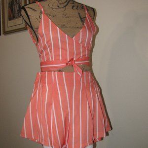 V-Neck Two Piece Short Set. Top is reversable and shorts are lined. Fabric: 65% polyster, 35% cotton, perfect for summer.