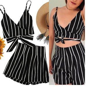 Shorts Set Wrap Bra Top Stripes (Top Reversable)