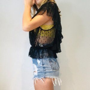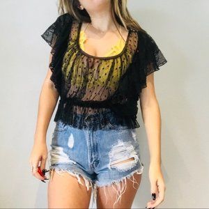 Free People black mesh polka dot ruffle top