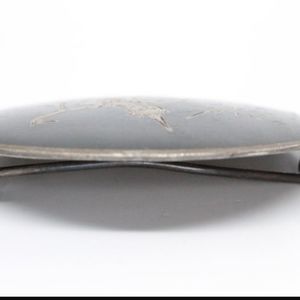 Sterling silver. Signed SK. Very old piece. Pin has dent. Can be straightened. Does not affect it in any way Black n silver