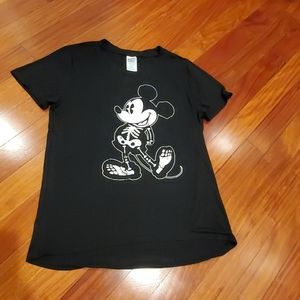 Preowned, excellent condition. Disney black short sleeve tee shirt top Halloween skeleton Mickey Mouse womens size XL. Approx measurements, Bust 19", front 24", back 28".