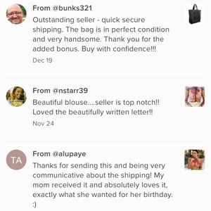 @jcaro Hey Jolie, itβs very thoughtful of you to message! I totally understand and know how it feels to be on the hunt for a particular piece. The blouse will be on hold for you until Thursday. ππ¦