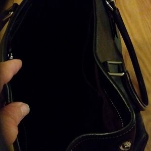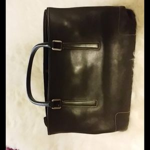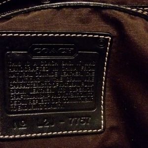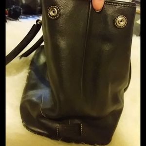 EUC Large black leather Coach purse. 2 interior pockets, one zips. Top can be secured with a hook. Sides can be snapped at the top. Black interior. No stains or holes. No wear signs. I'm cleaning out some of my Coach collection! 15x9x6.5