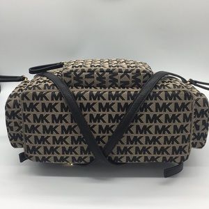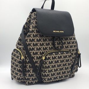 Abbey Large 35H9GAYB3J backpack is an easy portability, detailed with gold-tone hardware and leather accents, it has zip pockets at the front & side. size 11.5" (L) x 13.5" (H) x 5.5" (D) width is measured across the bottom of backpack. Large sized backpack