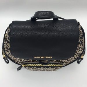 Crafted from MK signature logo print coated canvas with leather trim.Front flap with Michael Kors logo lettering detail