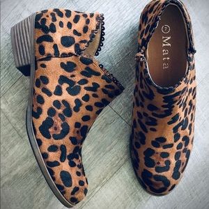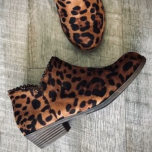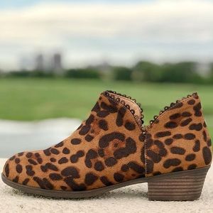 Mata Leopard Print Ankle Zip Faux Suede Stacked Block Heel Chelsea Bootie
